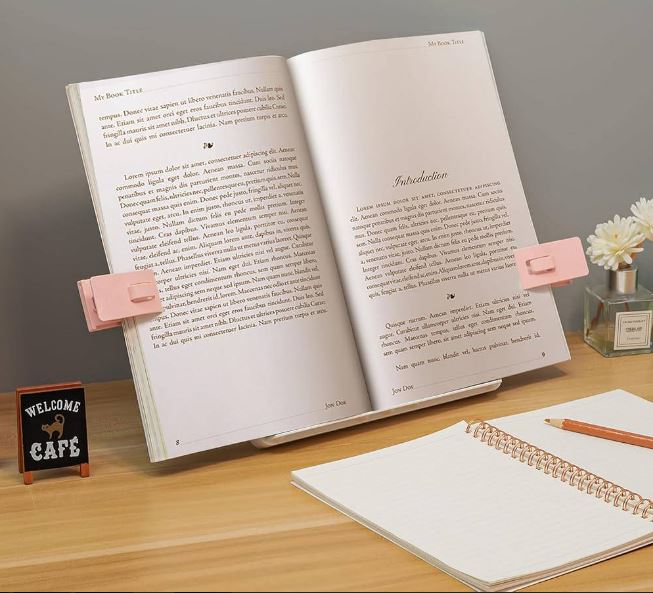 Правильне розташування книг або планшета допомагає уникати нахилів голови вниз, зменшуючи втому шиї та спини.